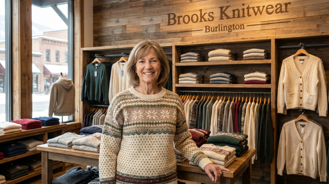 I opened this boutique in 1988 as a young woman who believed that knitwear should feel comforting, well-made, and enduring. What started as a small shop on Church Street became my life's work — a place built on quality, warmth, and the quiet trust of women who valued craftsmanship over trends.